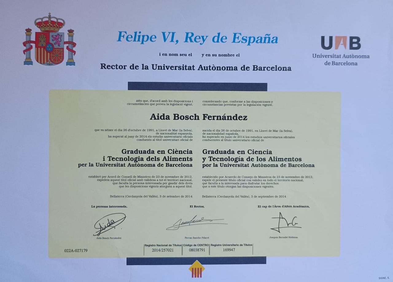 - Grado en Ciencia y Tecnología de los Alimentos Universitat Autònoma de Barcelona